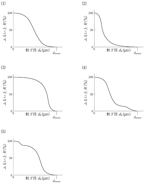 頻度分布が下図のようになるとき,対応するふるい上分布として,正しいものはどれか。