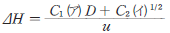 煙突排ガスの上昇高さを与えるモーゼスとカーソンの式中,(ア)及び(イ)にあてはまる物理量の組合せとして,正しいものはどれか。ただし,