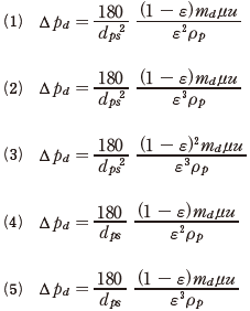 ダスト層の圧力損失を示すコゼニー・カルマンの式として,正しいものはどれか。ただし,