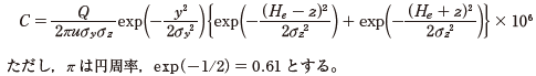 (ppm)は以下の正規型プルーム拡散式で与えられる。風速